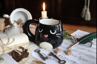 Hocus Pocus, kissamuki (300 ml). Kissa ja taikasauva. Toimitetaan lahjarasiassa. Virallinen lisensoitu L. Parker -fanituote. Tyylikäs! Katso toisesta kuvasta yksityiskohta. Koko: muki - kork. 10,5 cm, halk. 8 cm Hinta: 12.00 EUR 10.00 EUR (+ toimituskulut 8.00 EUR) Tuotenumero: IMG_10270